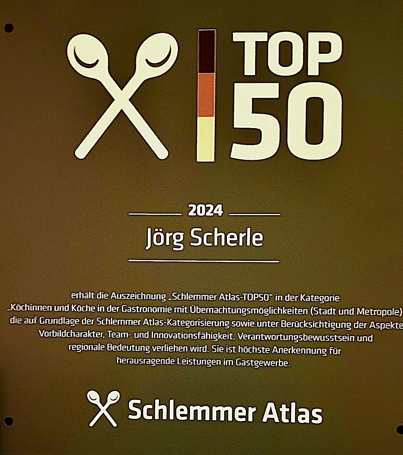 Seit er 1991 das Restaurant übernahm, kombiniert Jörg Scherle hier mit viel Mut und Kreativität die moderne, deutsche Küche mit japanischen Akzenten. Ein Konzept, das bei Gourmets und Experten gleichermaßen gut ankommt.