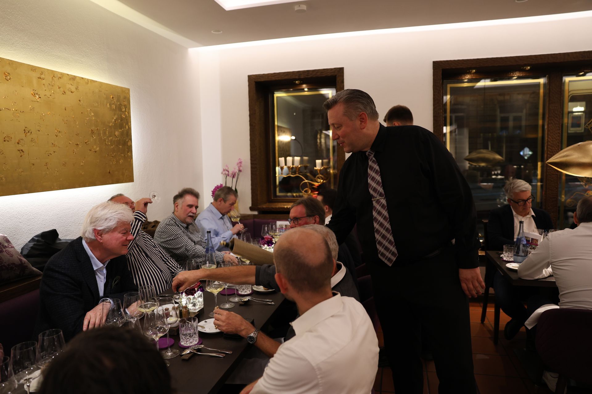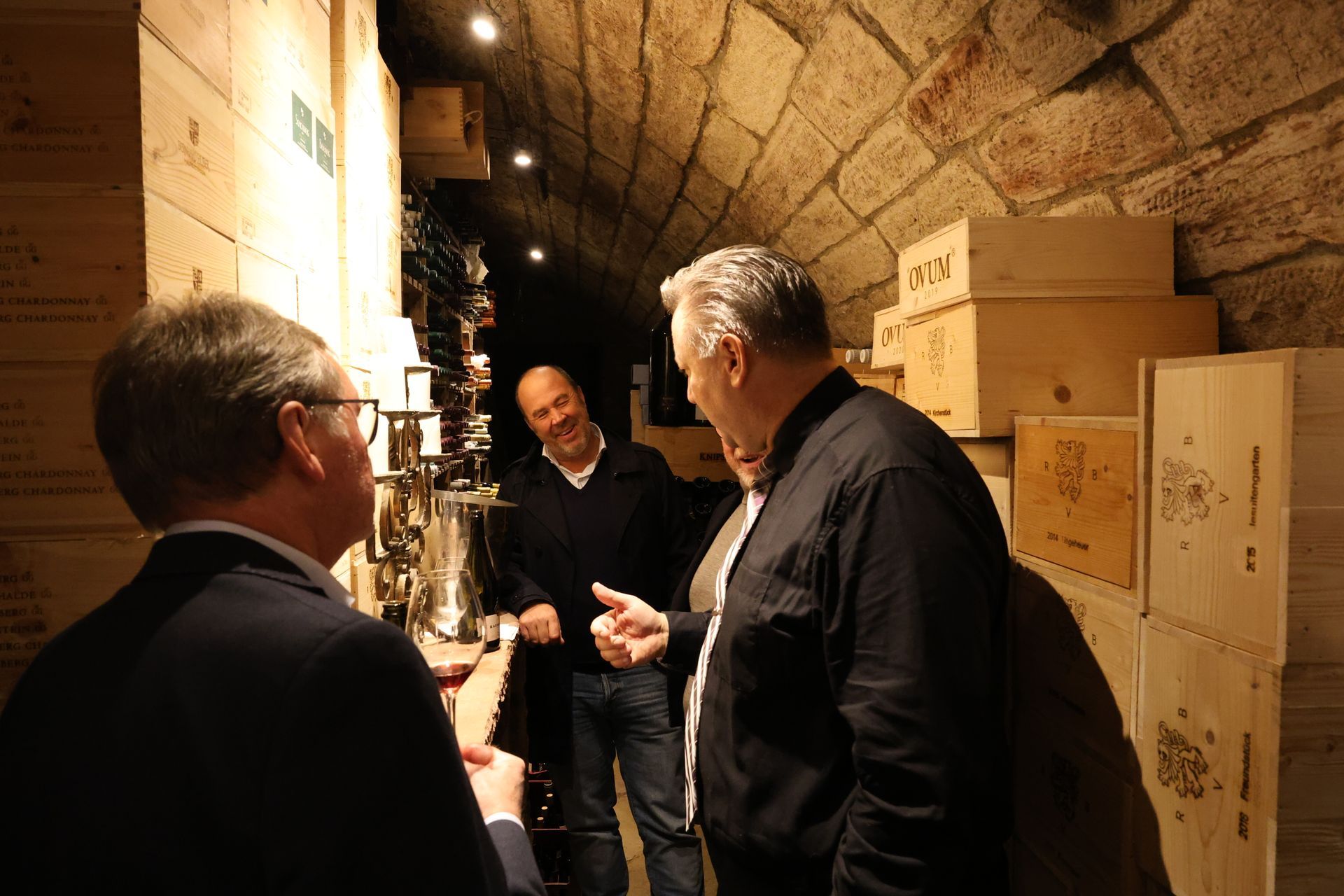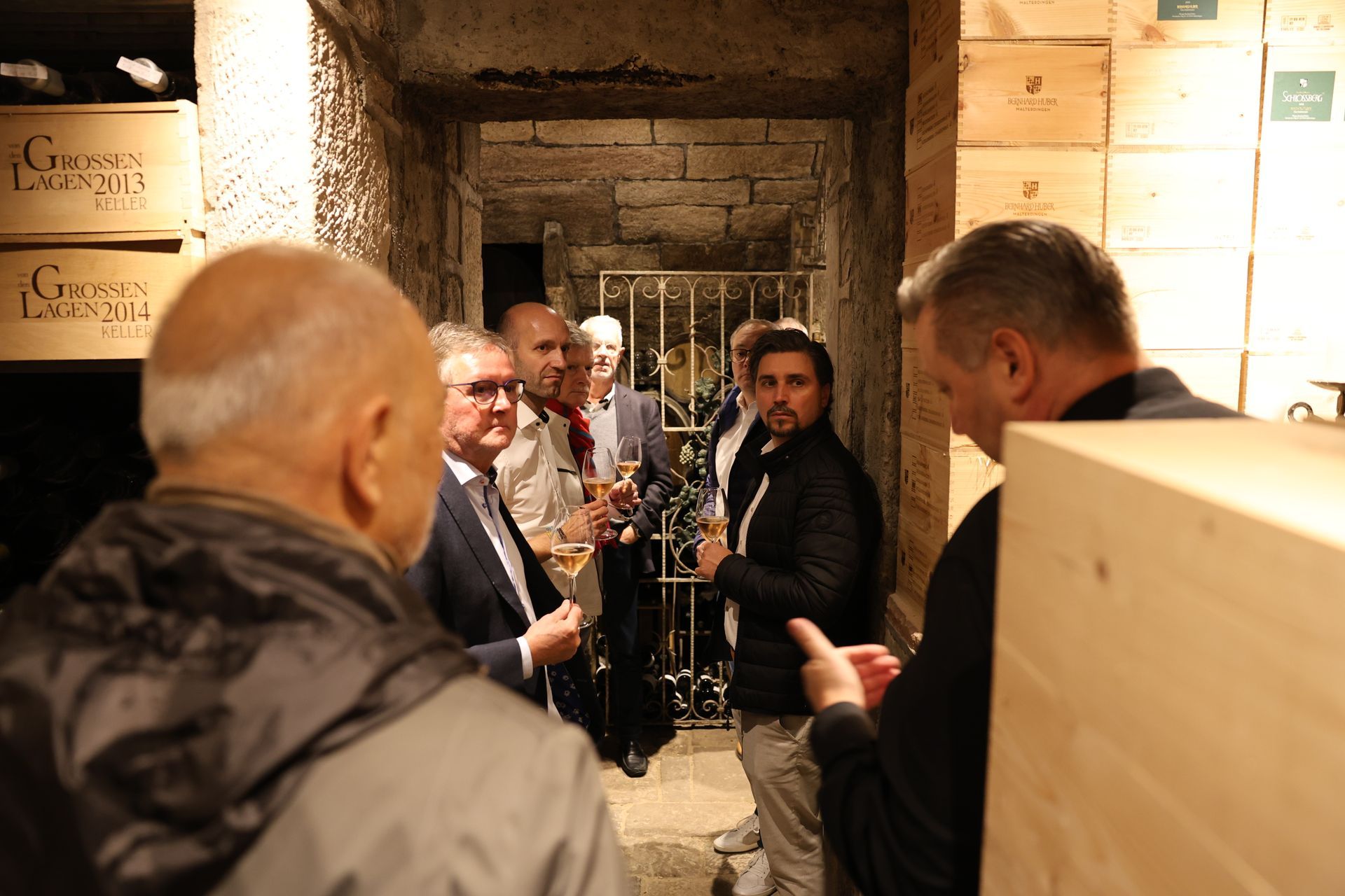 Die Herrenrunde starten wir im alten, kühlen Gewölbe-Weinkeller von 1870, mit Fingerfood und etwas Sprudelndem im Glas. Danach werden dann bei schönem Wetter im Gourmet-Rebgarten alternativ im neu gestalteten Gourmetrestaurant ein 5 Gänge Degustations-Menü aus der Sterne Küche von Jörg Scherle & Holger Haag serviert.. Natürlich immer mit mindestens einem großen Wein zu jedem Gang im Glas.